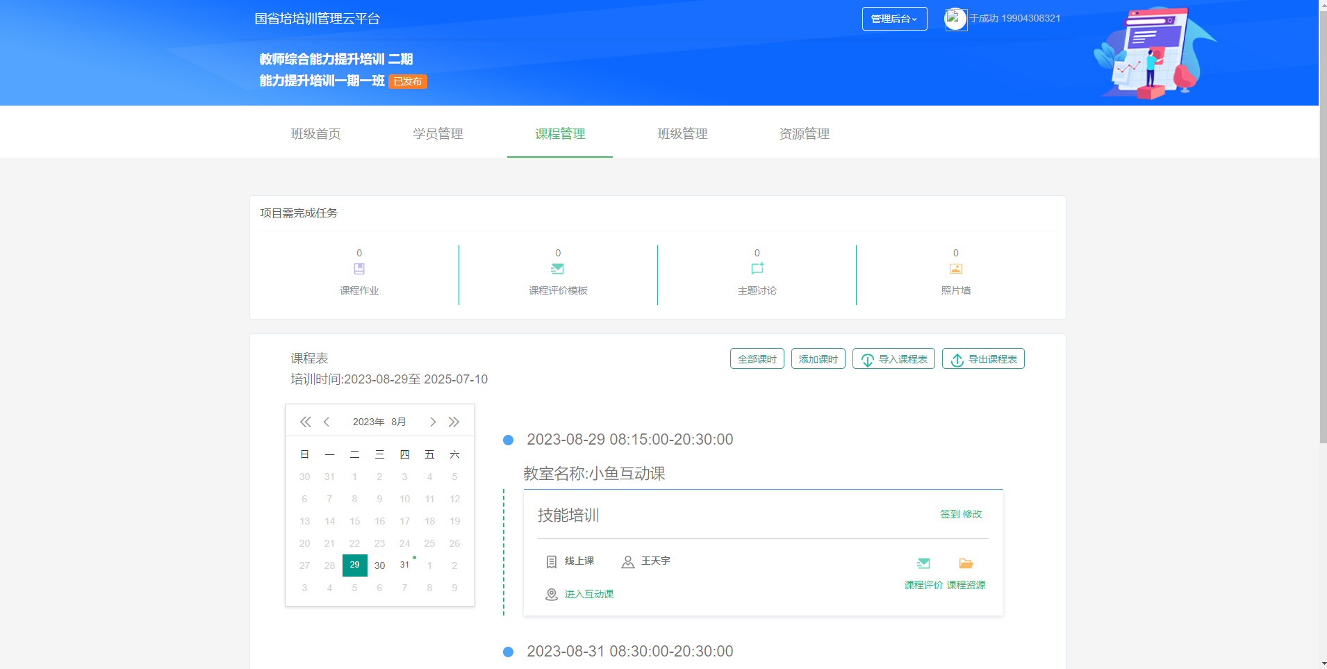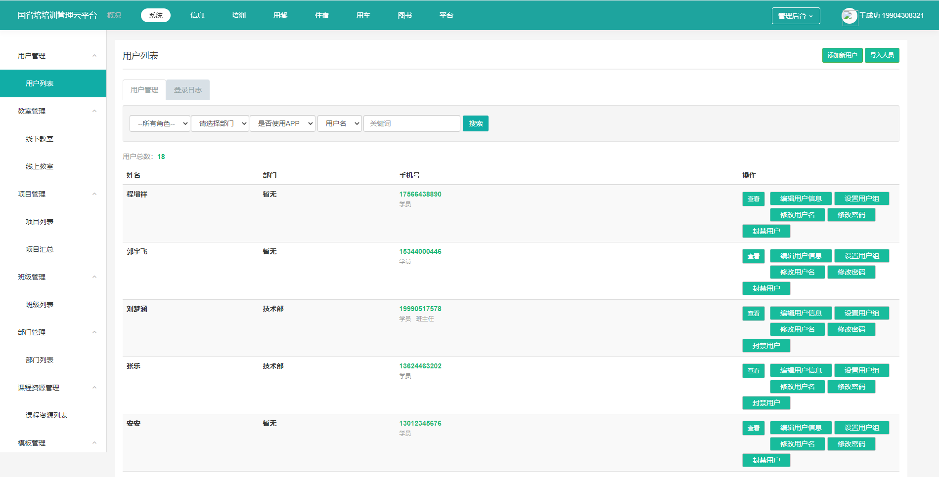 平台由项目管理、课程管理、教室管理、模板管理、人员管理等模块组成,可实现短期和长期线上培训项目的智能化管理。
