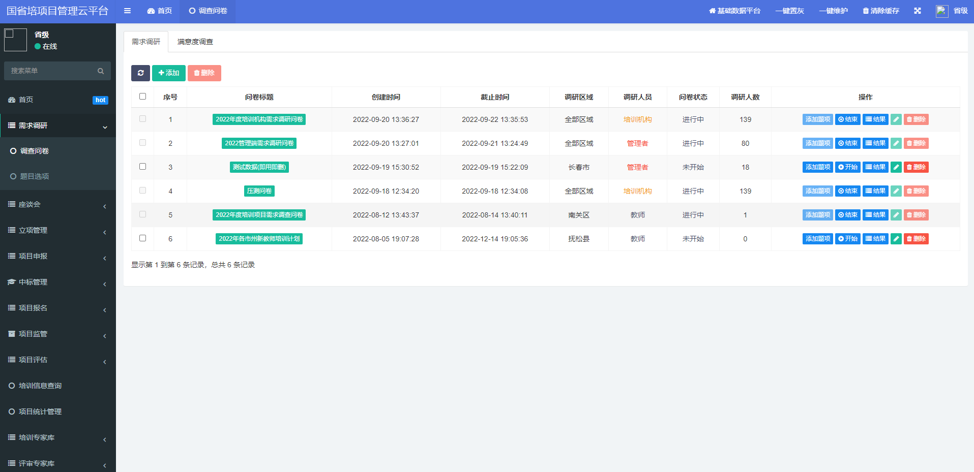国省培培训管理平台实现了国省培培训项目的流程化管理,主要包括项目立项、招标报名、专家评审、中标结果公布、市州区县学校报名、培训过程监管、培训绩效评估、电子证书发放等功能。