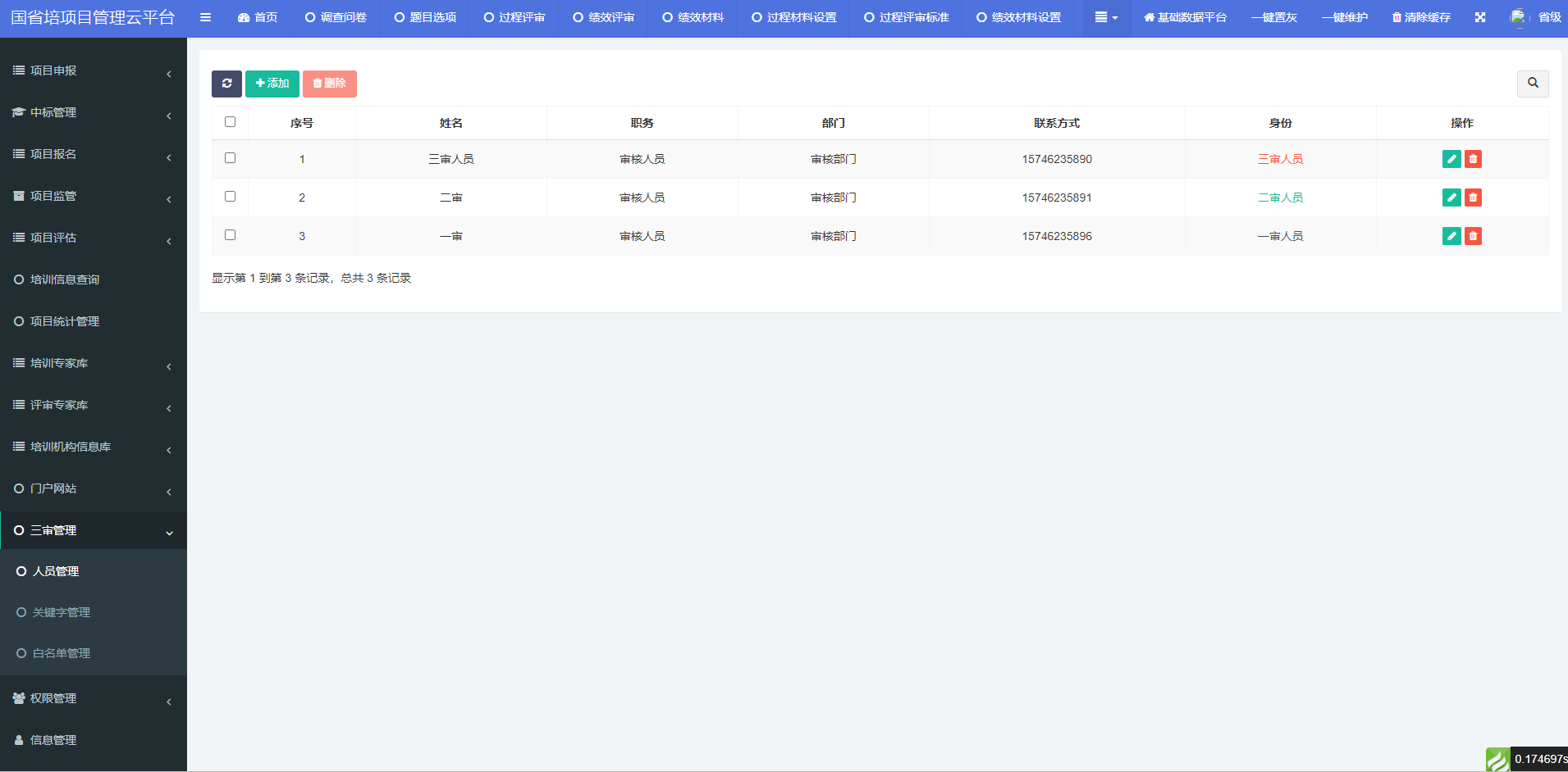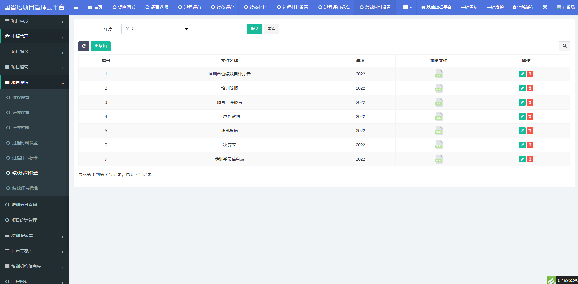 管理项目进程中过程材料与绩效材料的评审流程的标准设置、评审专家设置等功能